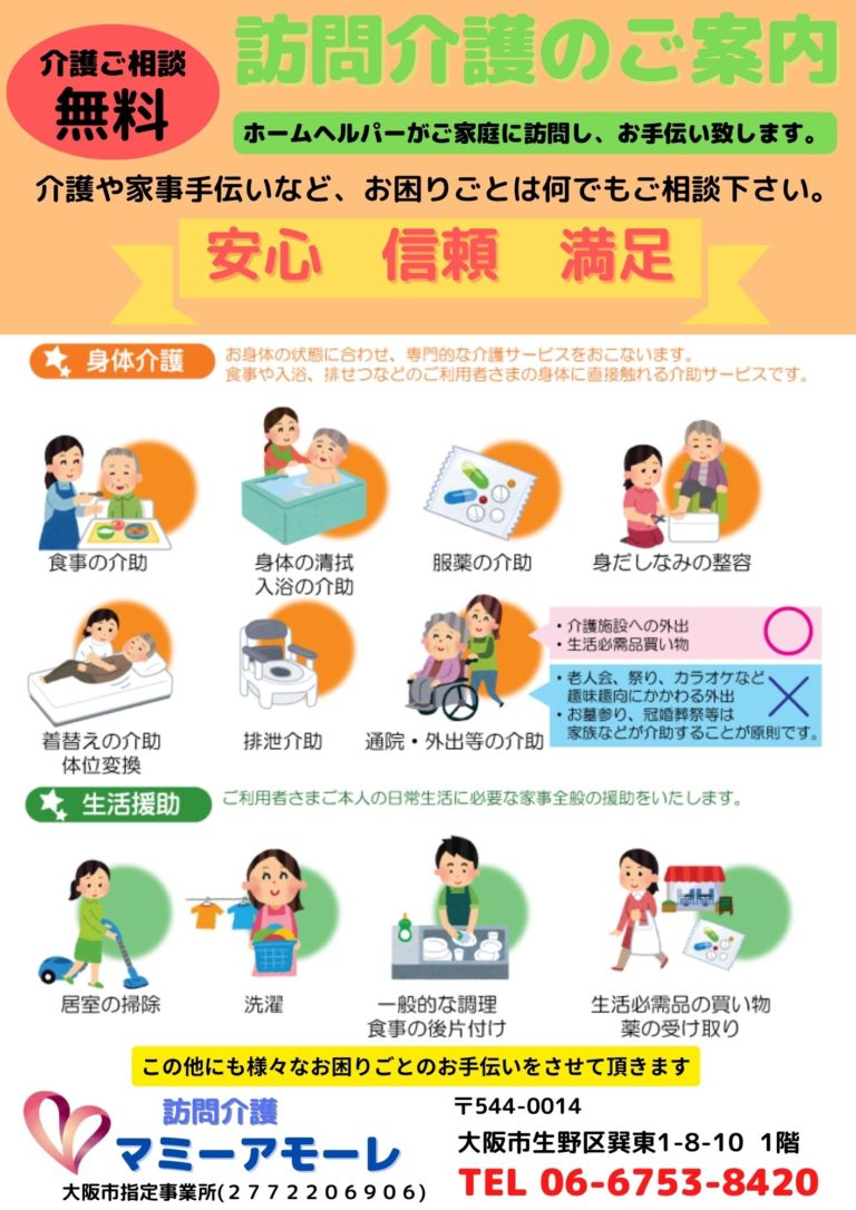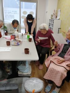 あなたにピッタリの介護サービスを提供します Tel/06-6753-8420 Fax/06-6753-8424 544-0014 大阪市生野区巽東1-8-10 ルシェル北巽1F 地下鉄千日前線北巽駅徒歩約6分 大阪市指定事業所 (2772206906/279220061) マミーアモーレ介護サービスは地域密着をモットーにまるでお家にいるようなホッとする 安心のあるデイサービスを目指しています 北巽駅から徒歩すぐ、マミーアモーレのレクリエーション。 木曜日は歌手の、よねだおさむが担当。発声練習から、イントロ当てクイズ、早口言葉、最近はパターゴルフも始めました。来年90才に成られる利用者さん、パターゴルフで益々元気に成りました。 マミーアモーレのデイサービス、大きな楽しみの1つは、宮本オーナー手作りのお弁当タイムです。家庭料理の味を愛情込めて、まさに「お母さんの弁当」です。今日も皆さん楽しそう!デイサービス、マミーアモーレは北巽駅から徒歩すぐです! マミーアモーレ 2/1のデイサービス レクリエーションは 早口言葉滑舌を鍛える!楽しい時間でした赤巻紙 青巻紙 黄巻紙バス ガス爆発砂漠で油売るアラブの油売り投げやりな槍投げマジ貧しい魔術師……言えるかな? 電話をかける メールでのお問い合わせ 名前 メール 電話 メッセージ Send